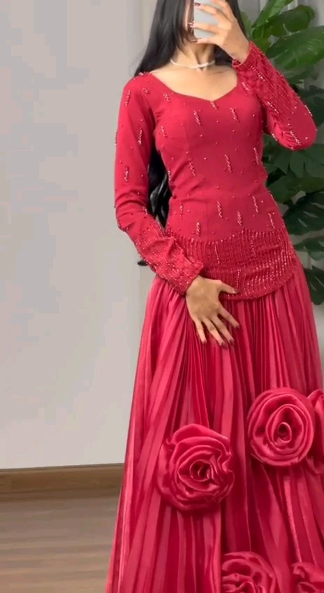 فستان اورجنزا لمعة الصدرية كريب باربي تطريز شك على القطعة