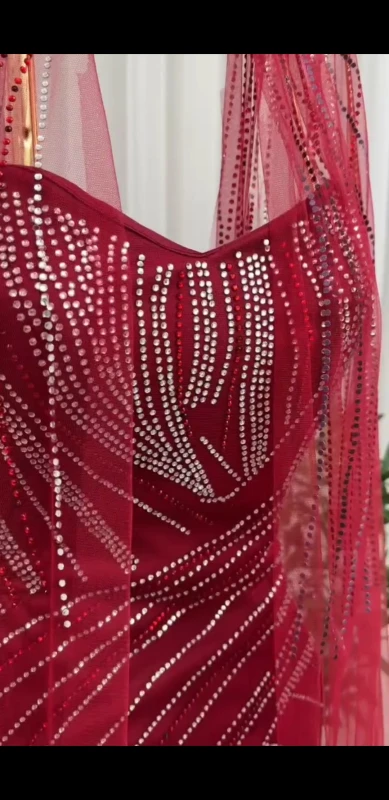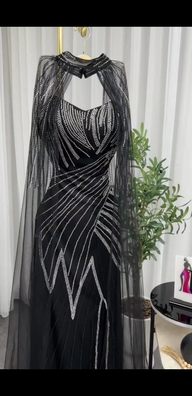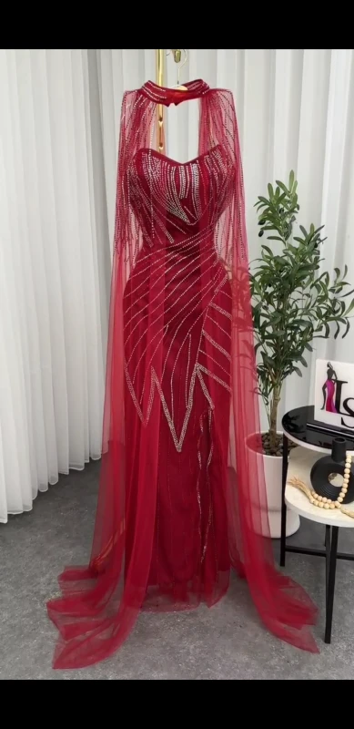 فستان لبانة استرتش مغطى بتل مطرز تطريز فخم وراقي