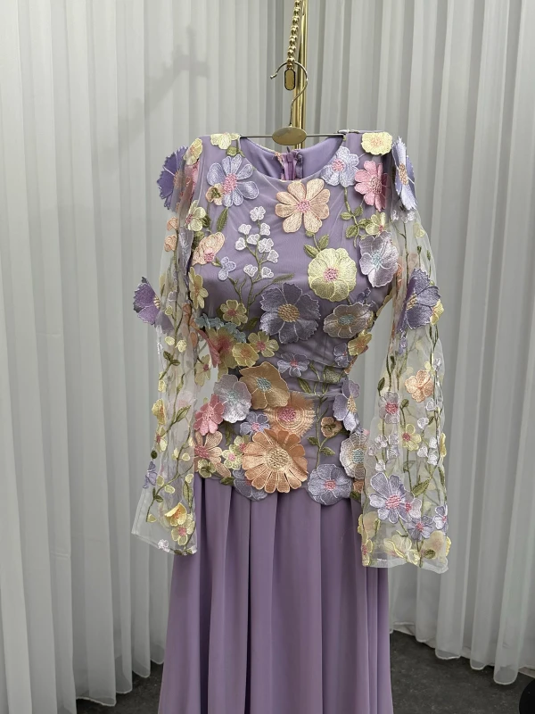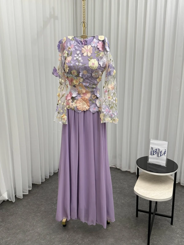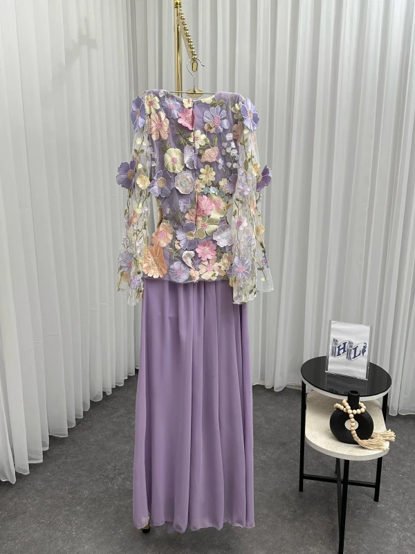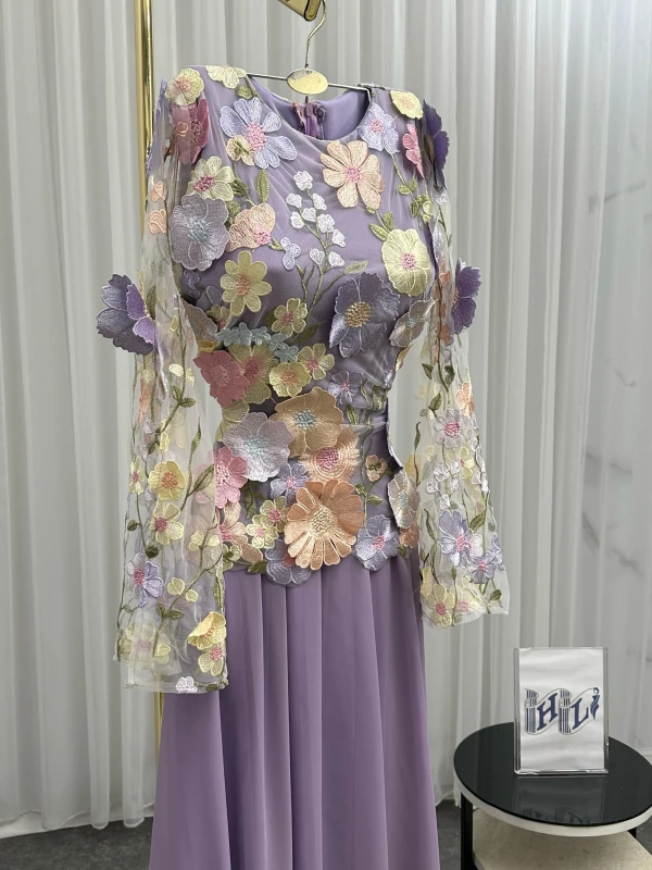 فستان نسائي شيفون جورجيت مع كلفة ورود