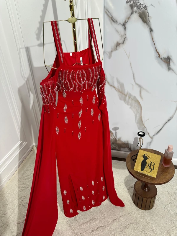 فستان شيفون جورجيت تطريز يدوي راقي على القماش فخم وراقي