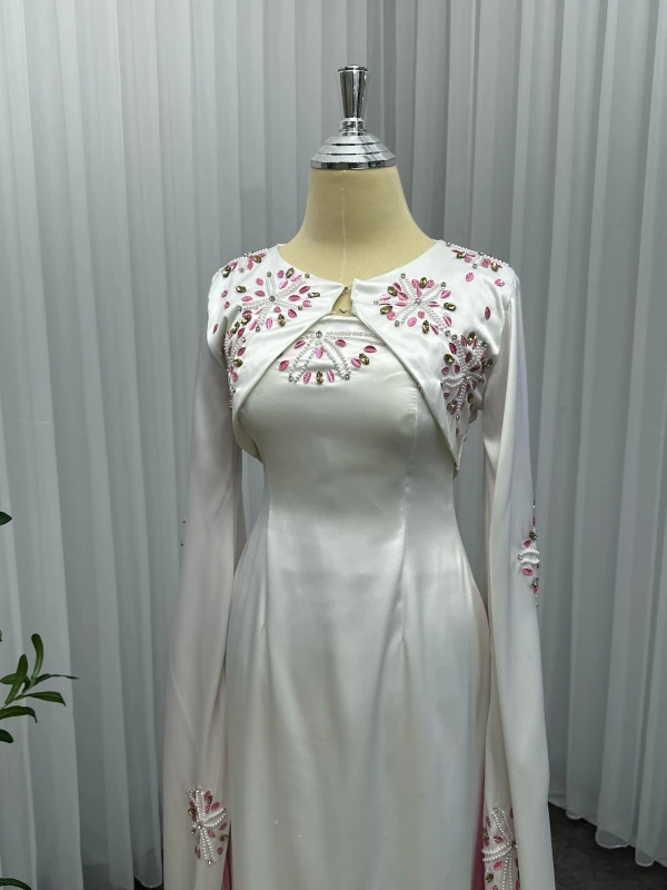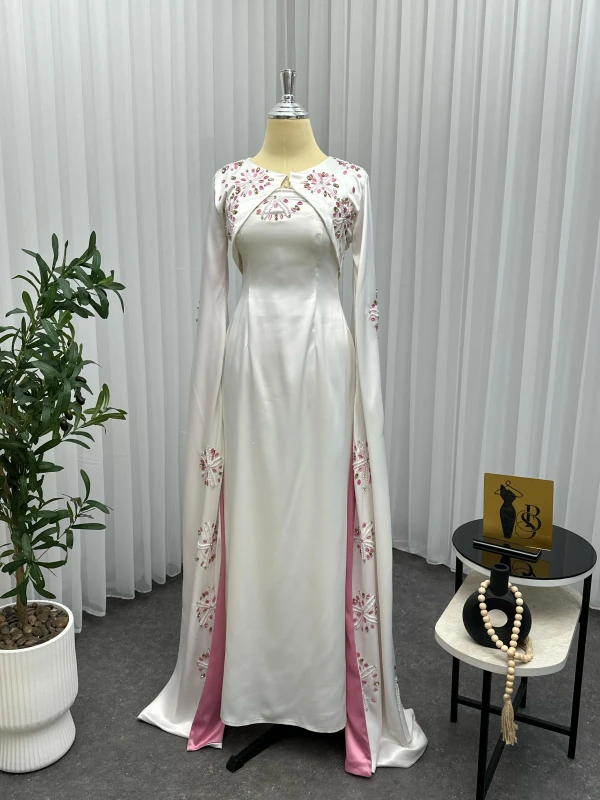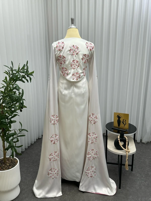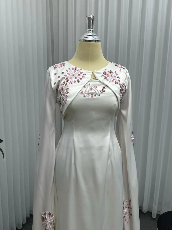فستان نسائي تفتة استرتش+تطريز يدوي بطريقة ملمسي